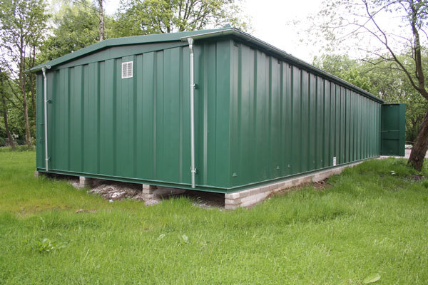A new secure steel garage building to house all the equipment and machinery associated with maintenance operations at a cemetery. This building was fully constructed off-site then delivered to site in 6 fully welded modular sections.